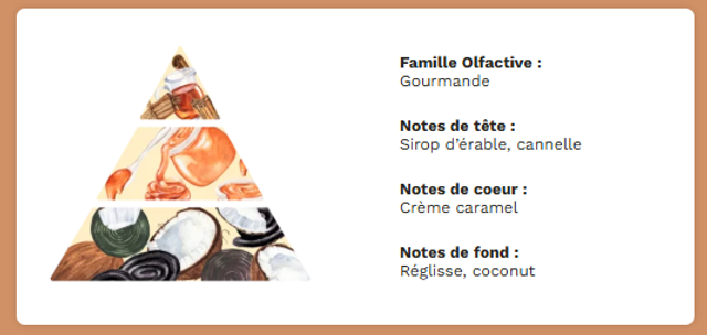 Douceur du Canada, un parfum gourmand qui capture l’essence chaleureuse et sucrée du Canada.