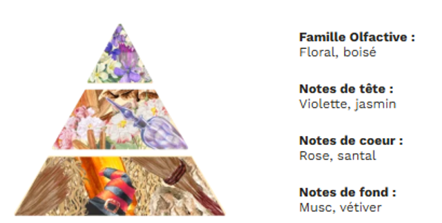 Le cœur parfumé révèle ensuite la richesse d’une rose profonde et la chaleur boisée du santal, pour une expérience sensorielle intense.